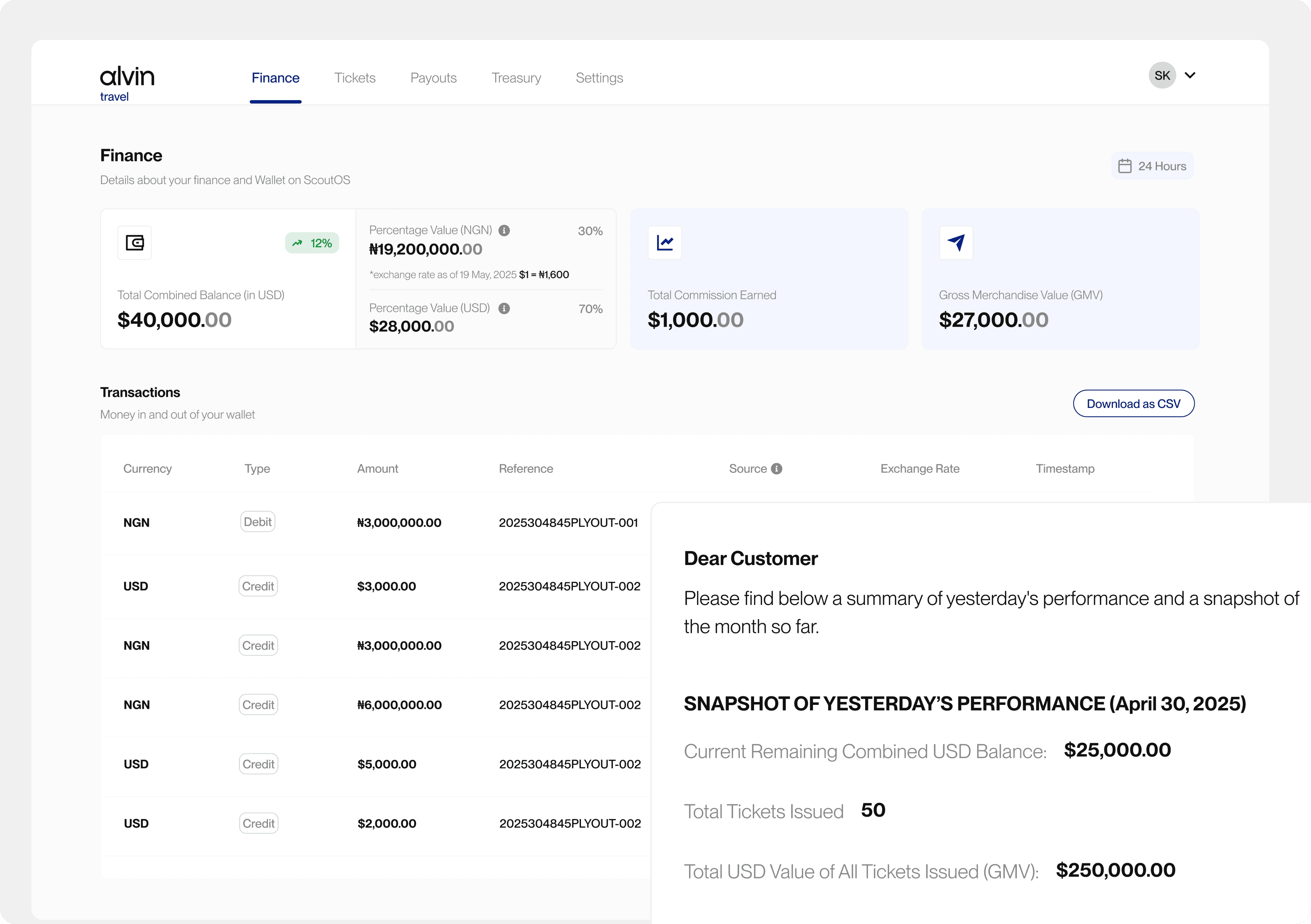 Monitor bookings, commissions and wallet balance in your Alvin Dashboard.